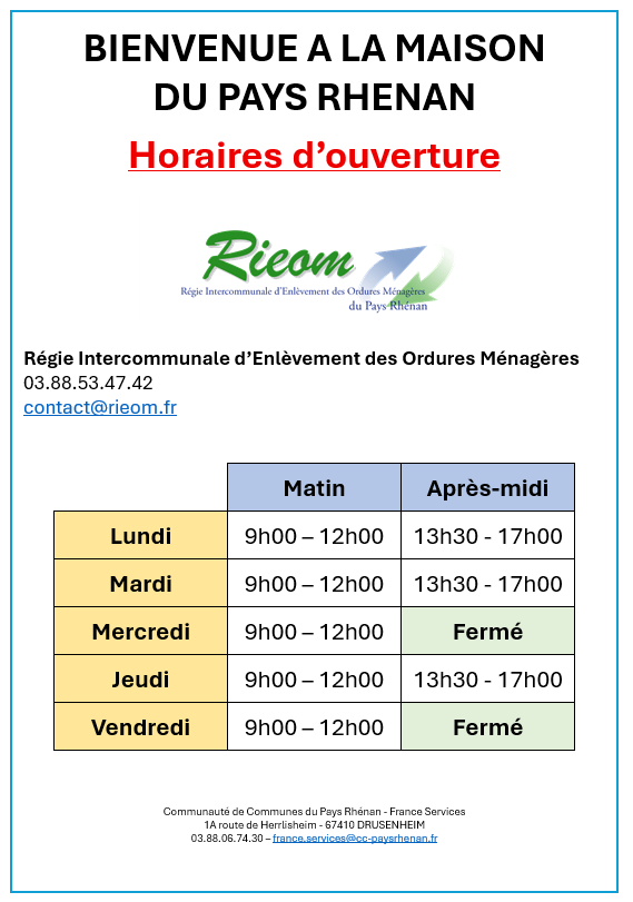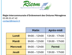 RIEOM : NOUVEAUX HORAIRES JUSQU'AU 23/01